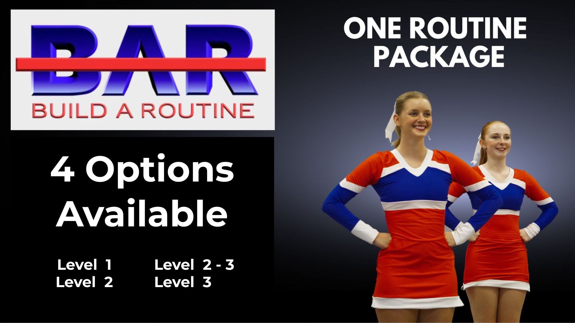 Our One Routine BAR package includes 16 blocks of choreography (4 different options for A, B, C, and D blocks) that connect seamlessly to create one minute routines. Drag and drop system lets you preview the entire dance before you download. Once you love what you created, click the download button and you will received your preview video, 4 instructional lessons that can be shared directly with students, and the licensed music you select. Video lessons include on-screen formations that can be adjusted to any size team. We teach count by count with front and back views. Students learn at their own pace, saving valuable practice time and building confidence.